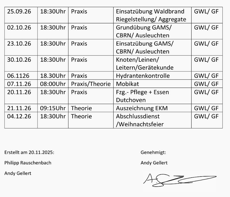 Am 29.10.2025 fand eine gemeinsame Einsatzübung mit der Feuerwehr Waldenburg an der AMOS statt. Die zwei Übungspuppen wurden gerettet und das Feuer gelöscht.